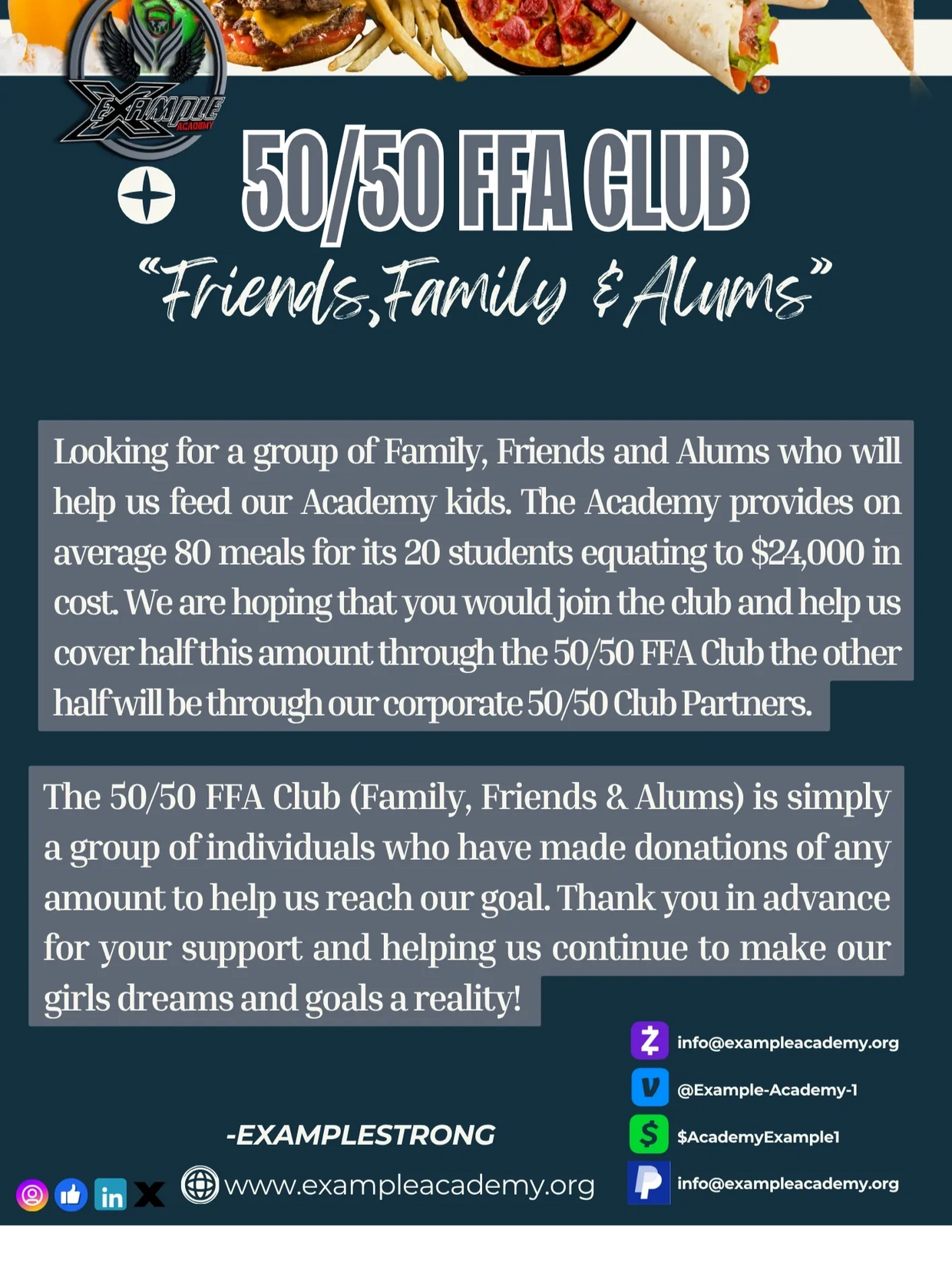 Example Academy is the first all-girls’ national high school preparatory academy in Illinois, dedicated to empowering young women ages 14–18 through academics, athletics, and mentorship. Located in Frankfort, IL, the Academy provides a rigorous college-prep curriculum, elite athletic training, and leadership development to prepare student-athletes for success in higher education and beyond. With services including college recruitment, career readiness, wellness support, and our signature Mentorship Monday, we ensure students thrive both on and off the court. Example Academy is shaping the next generation of leaders, athletes, and change makers.